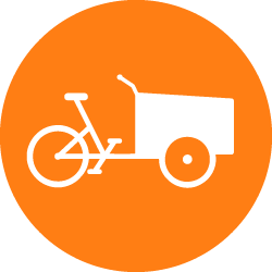 KurbelKISTE benutzt ein elektrisch unterstütztes Lastenfahrrad und passende Anhänger, um Ihre Sendungen sicher, trocken und ökologisch sinnvoll durch den städtischen Verkehr zu transportieren.